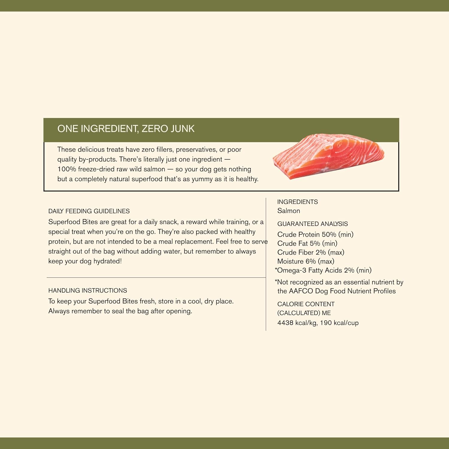 Bite-size treats made with one single, nutritious ingredient: premium freeze-dried raw wild salmon. Ingredients 100% freeze-dried wild salmon Guaranteed Analysis... Read more