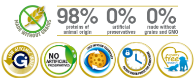 Nutritional additives: Vitamin A 16000IU; Vitamin D3 1600IU; Vitamin E 600mg; Vitamin C 160mg; Niacin 40mg; pantotenic acid 16mg; Vitamin B2 8mg; Vitamin B6 6.4mg; Vitamin B1 4.8mg; Vitamin H 0.40mg; folic acid 0.48mg; Vitamin B12 0.1mg; Choline Chloride 2800mg; Beta-Carotene 1.5mg; zinc chelate of the analogous methionine hydroxylase 910mg; manganese chelate of the analogous methionine hydroxylase 380mg; ferrous chelate of glycine hydrate 250mg; copper chelate of the analogous methionine hydroxylase 15.8mg; selenised yeast inactivated 0.40mg; DL-methionine 4000mg; Taurine 1000mg; L-Carnitine 300mg. Organoleptic additives: aloe vera extract 1000mg; green tea extract 100mg; rosemary extract. Antioxidants: tocopherol-rich extracts of natural origin.