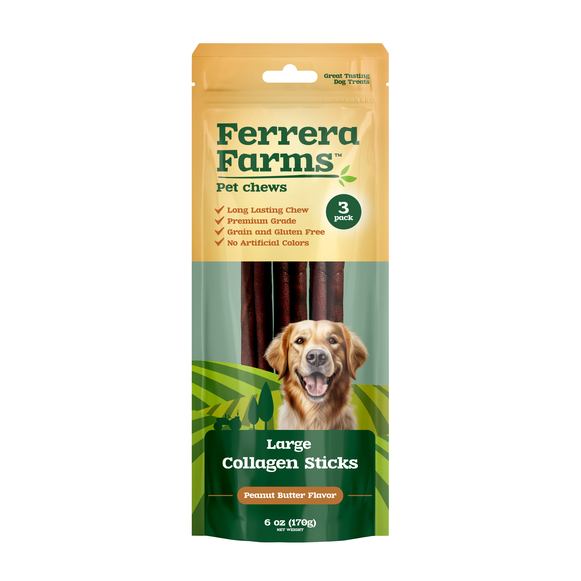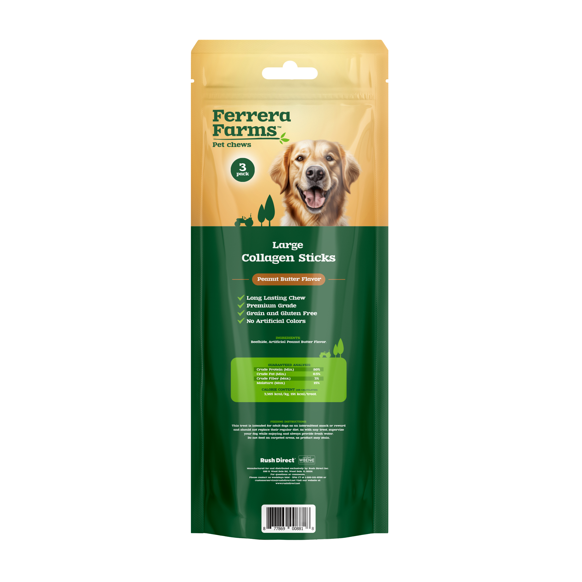 Ferrera Farms Collagen Sticks Peanut Butter Flavor Large Dog Chews 3-Pack