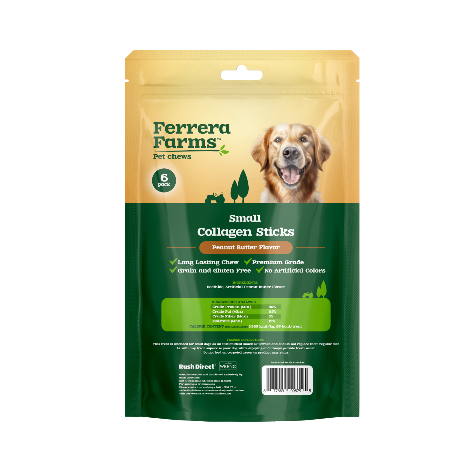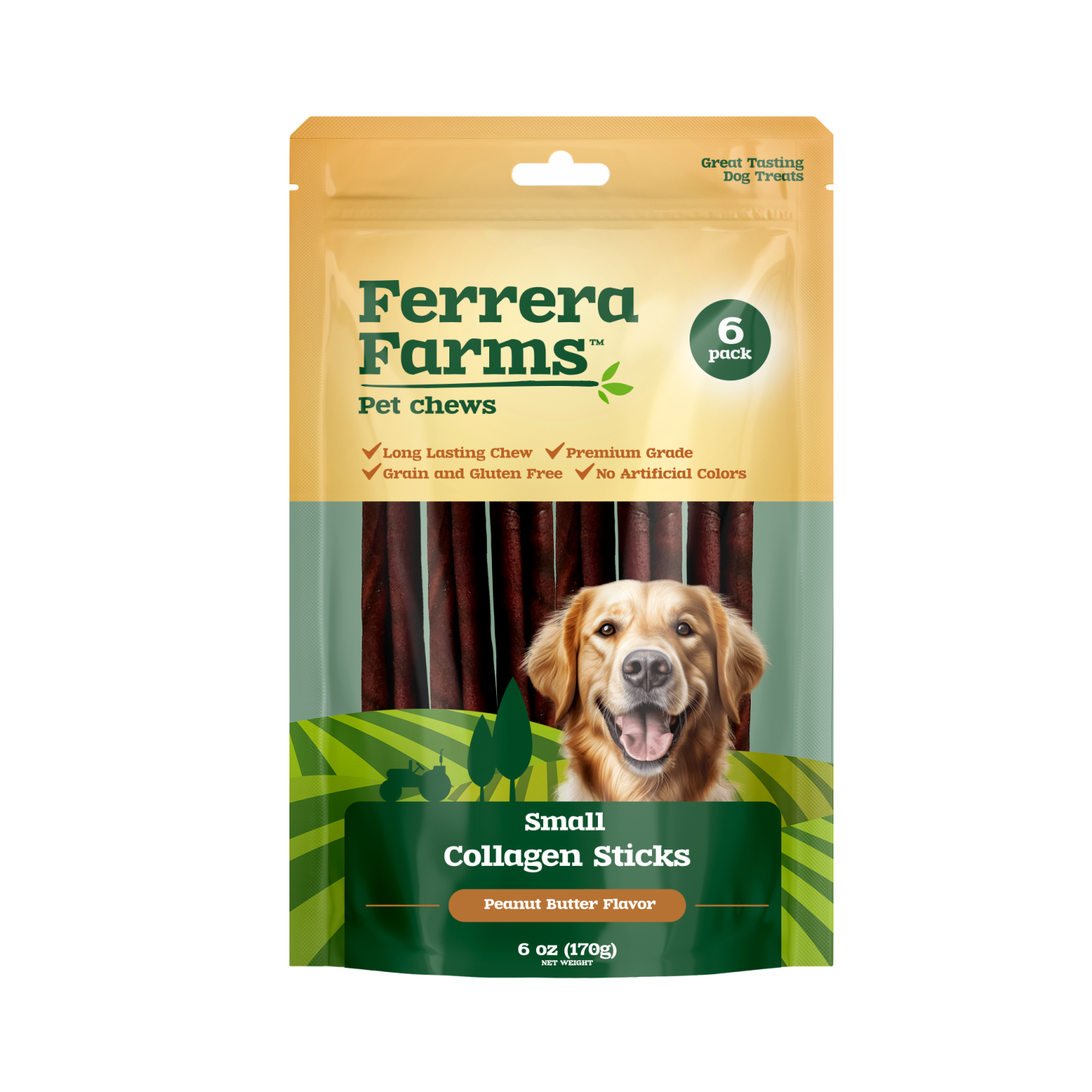 Ferrera Farms Collagen Sticks Peanut Butter Flavor Small Dog Chews 6-Pack