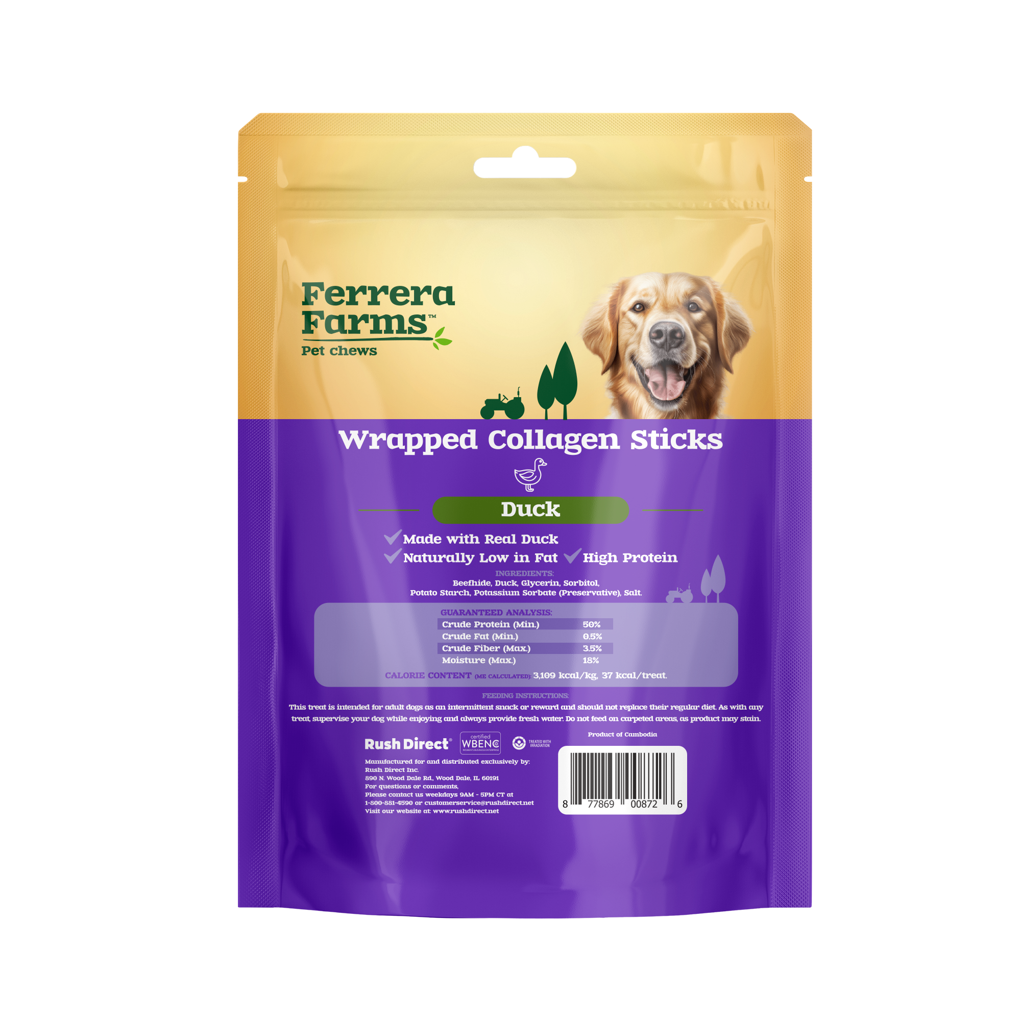 Ferrera Farms Duck Wrapped Collagen Sticks Dog Chews 5OZ