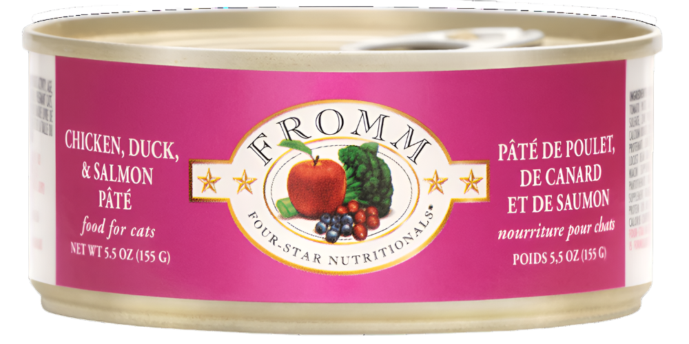 Chicken, Chicken Broth, Chicken Liver, Duck, Salmon, Flaxseed, Tomato Paste, Minerals [Dicalcium Phosphate, Zinc Sulfate, Magnesium Sulfate, Ferrous Sulfate, Zinc Proteinate, Calcium Carbonate, Copper Sulfate, Iron Proteinate, Sodium Selenite, Calcium Iodate, Manganese Sulfate, Copper Proteinate, Manganese Proteinate], Agar-Agar, Xanthan Gum, Dried Egg Product, Salt, Potassium Chloride, Taurine, Vitamins [Choline Chloride, Vitamin E Supplement, Niacin Supplement, Thiamine Mononitrate, Vitamin A Supplement, Calcium Pantothenate, Riboflavin Supplement, Pyridoxine Hydrochloride, Vitamin B12 Supplement, Vitamin D3 Supplement, Folic Acid].