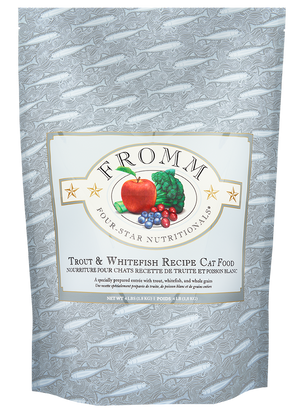 Trout, Whitefish, Menhaden Fish Meal, Dried Egg Product, Salmon Meal, Whole Barley, Whole Oats, Brown Rice, Natural Flavor, Canola Oil (preserved with mixed tocopherols),Oatmeal, Pearled Barley, Salmon Oil (preserved with mixed tocopherols),Dried Tomato Pomace, Miscanthus Grass, Flaxseed, DL-Methionine, Broccoli, Apples, Vitamins [Choline Chloride, Potassium Chloride, Vitamin E Supplement, Niacin Supplement, Ascorbic Acid], Calcium Carbonate, Vitamins [Pyridoxine Hydrochloride, Vitamin A Supplement, Folic Acid, Calcium Pantothenate, Thiamine Mononitrate, Riboflavin Supplement, Vitamin D3 Supplement, Biotin, Vitamin B12 Supplement], Chicory Root Extract, Taurine, Sorbic Acid (Preservative), Minerals [Zinc Sulfate, Manganese Sulfate, Ferrous Sulfate, Magnesium Sulfate, Zinc Proteinate, Iron Proteinate, Manganese Proteinate, Copper Sulfate, Magnesium Proteinate, Copper Proteinate, Calcium Iodate], Salt, Cranberries, Yucca Schidigera Extract, Sodium Selenite, Blueberries, Dried Lactobacillus casei Fermentation Product, Dried Lactobacillus reuteri Fermentation Product, Dried Lactobacillus acidophilus Fermentation Product, Dried Lactobacillus plantarum Fermentation Product., Menadione Sodium Bisulfite Complex.