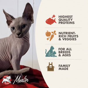 Wholesome and delicious food that is carefully crafted for cats of all breeds and ages, from Maine Coons to Munchkins, kittens to seniors, and every breed and stage in-between.