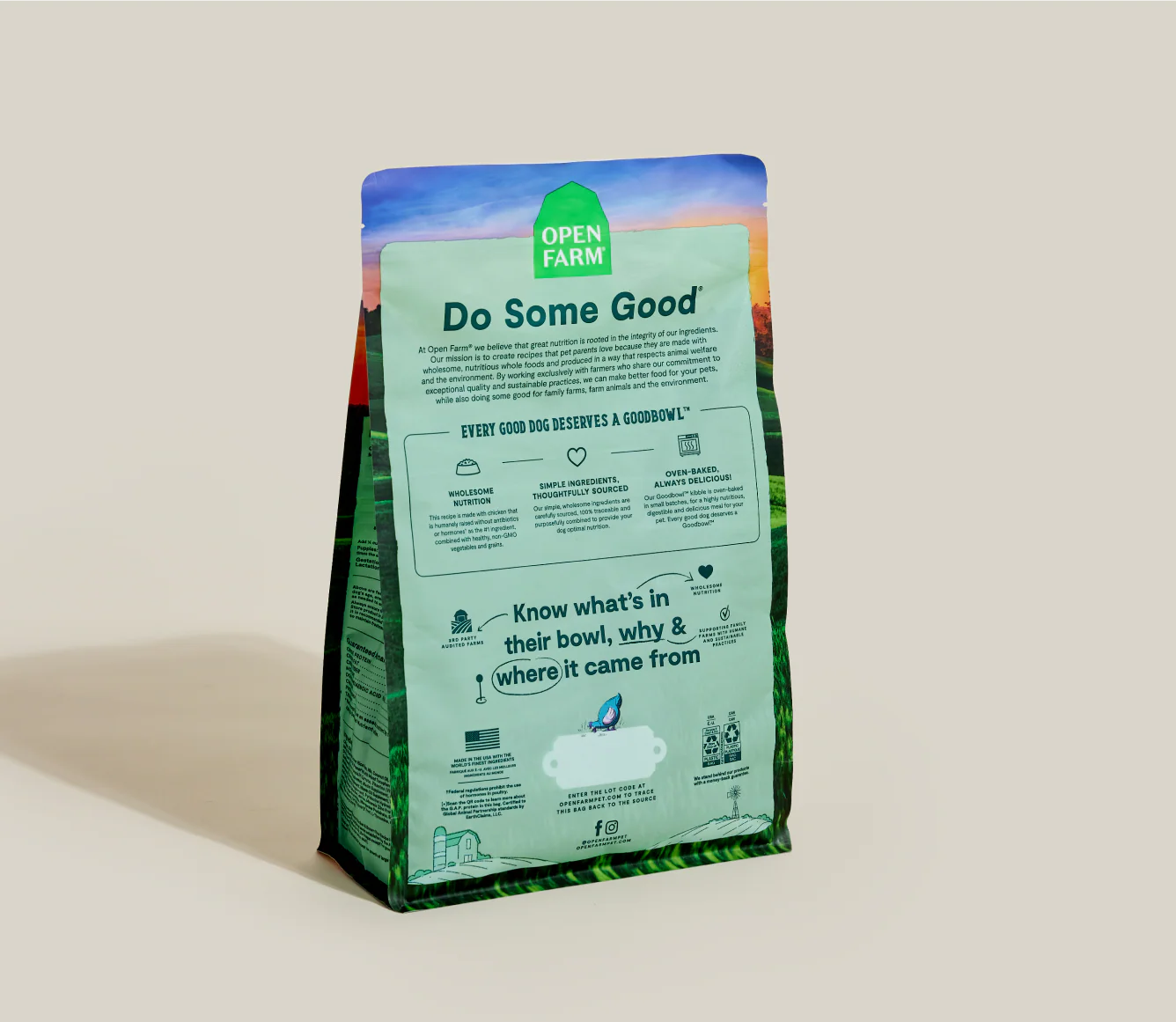Open Farm Goodbowl™ Harvest Chicken & Brown Rice Recipe Dog Food is formulated to meet the nutritional levels established by the AAFCO Dog Food Nutrient Profiles for All Life Stages except for growth of large size dogs (70 lbs or more as an adult).