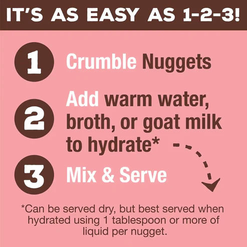 It’s easy to feed your cat real, whole foods that deliver optimal nutrition and digestibility with Primal Freeze-Dried Raw Nuggets. Our Beef & Salmon Recipe freeze-dried raw cat food is free of synthetic vitamins and minerals. It’s made with grass-fed beef raised without steroids or added hormones and wild-caught salmon. Simply portion, shred, and hydrate with warm water, Bone Broth, or Raw Goat Milk. Available in 5.5- and 14-ounce resealable bags.