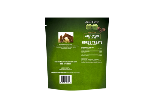 Tribute Wholesome Blends Apple Horse Treats are cookie-sized, soy-free horse treats made with apples, ground oats, beet pulp and probiotics. These treats are soft, safely made and sure to have your horse begging for more!