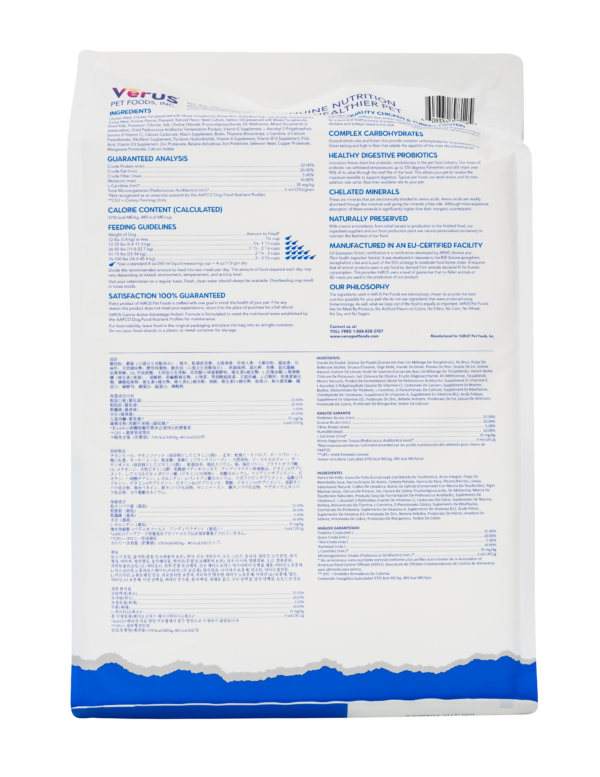 VēRUS Active Advantage Chicken Meal & Turkey Meal Holistic Formula provides complete and balanced nutrition for the life of your dog.