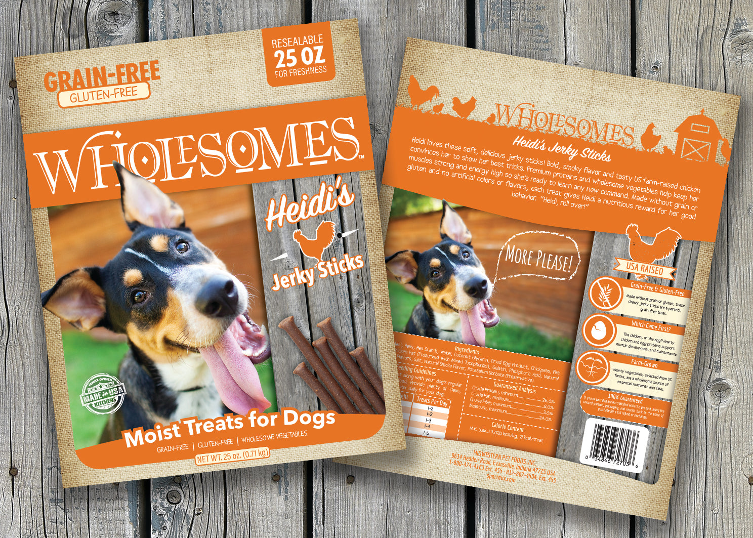 Heidi loves these soft, delicious jerky sticks! Bold, smoky flavor and tasty US farm-raised chicken convinces her to show her best tricks. Premium proteins and wholesome vegetables help keep her muscles strong and energy high so she’s ready to learn any new command. Made without grain or gluten and no artificial colors or flavors, each treat gives Heidi a nutritious reward for her good behavior. “Heidi, roll over!”